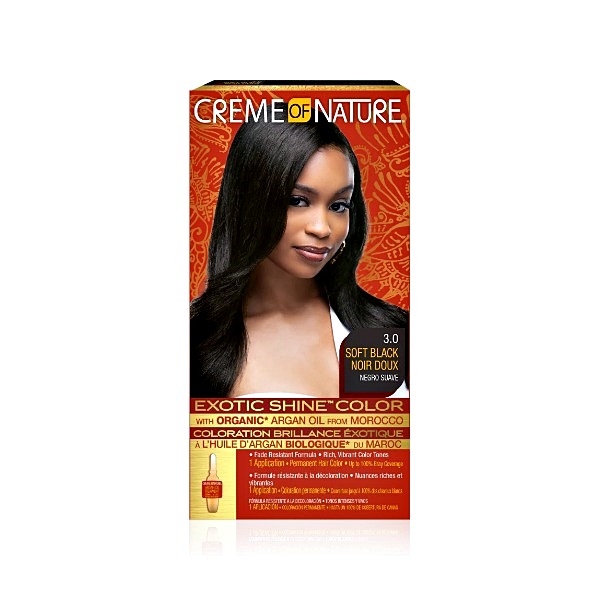 Creme Of Nature exotic shine hair color is a permanent hair color dye that is infused with double the conditioning power of argan oil and strengthening micro-sphere technology.
